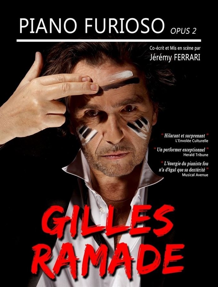 Dans ce " one gamme show ", Gilles Ramade, de son accent italien ravageur, vous relit des Lettres ou Elise s'appelle Thérèse, joue un concerto imprimé sur sa housse de couette et du Ray Charles les yeux bandés. Un désopilant concours de dépliage de pupitre précède l'étonnante séance d'hypnose musicale.