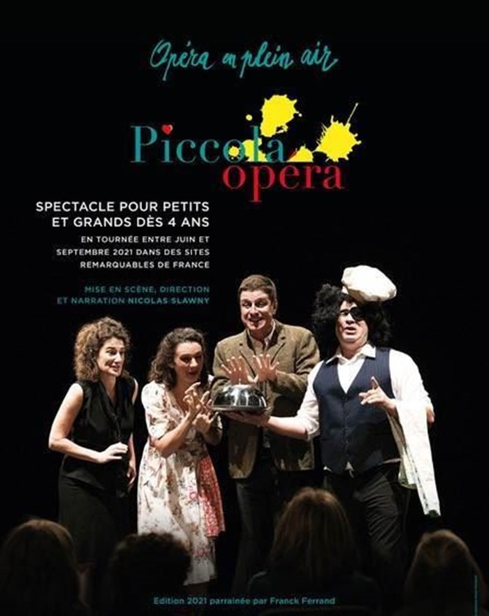 Mozart, Bizet, Puccini... le spectacle explore les grands compositeurs et les passions humaines qui font l'histoire de l'opéra, et dont la portée universelle peut être appréhendée à tout âge. Dans un décor extraordinaire, en plein coeur des domaines, Piccola Opéra est une mise en bouche lyrique qui forme le palais des tout jeunes appétits, tout en régalant les grands gourmands.