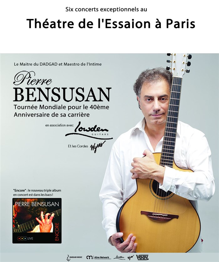 Pour fêter les 40 ans de scènes de l'infatigable troubadour (1974–2014), Pierre Bensusan revient pour 6 concerts à l'Essaion, présenter "Encore" son nouveau Triple album live !