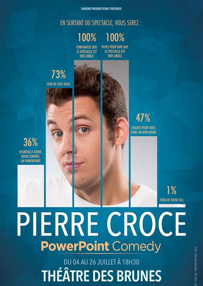 Cet outil généralement connu pour ses présentations soporifiques, est ici détourné de main de maître par Pierre Croce pour nous faire rire pendant une heure.