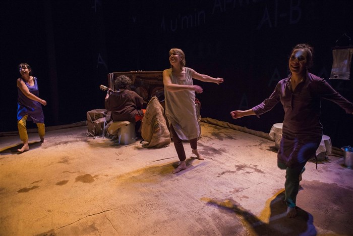 Sur la scène du Salon de Théâtre, dans une intimité propice aux confidences, trois comédiennes et une musicienne livrent une adaptation sensible et poignante de Syngué Sabour :