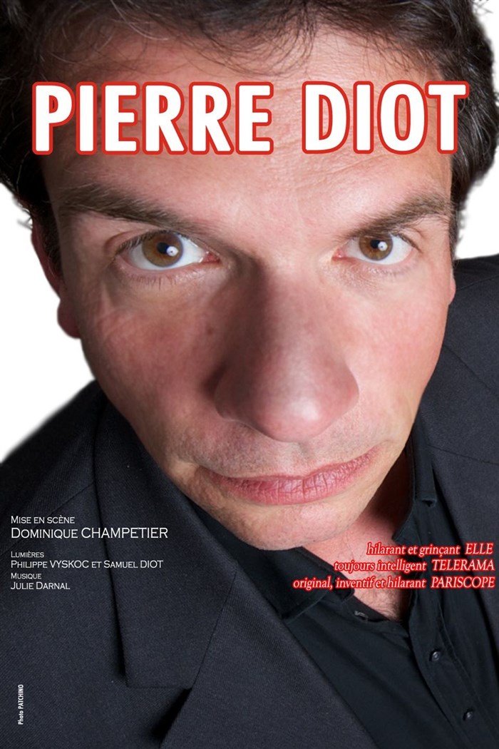 Sorti du Conservatoire National, Pierre Diot, que beaucoup connaissent pour ses apparitions au cinéma et à la télé (On ne demande qu'à en Rire sur France 2) a été récompensé dans une dizaine de festivals d'humour pour son originalité, son jeu et son écriture...