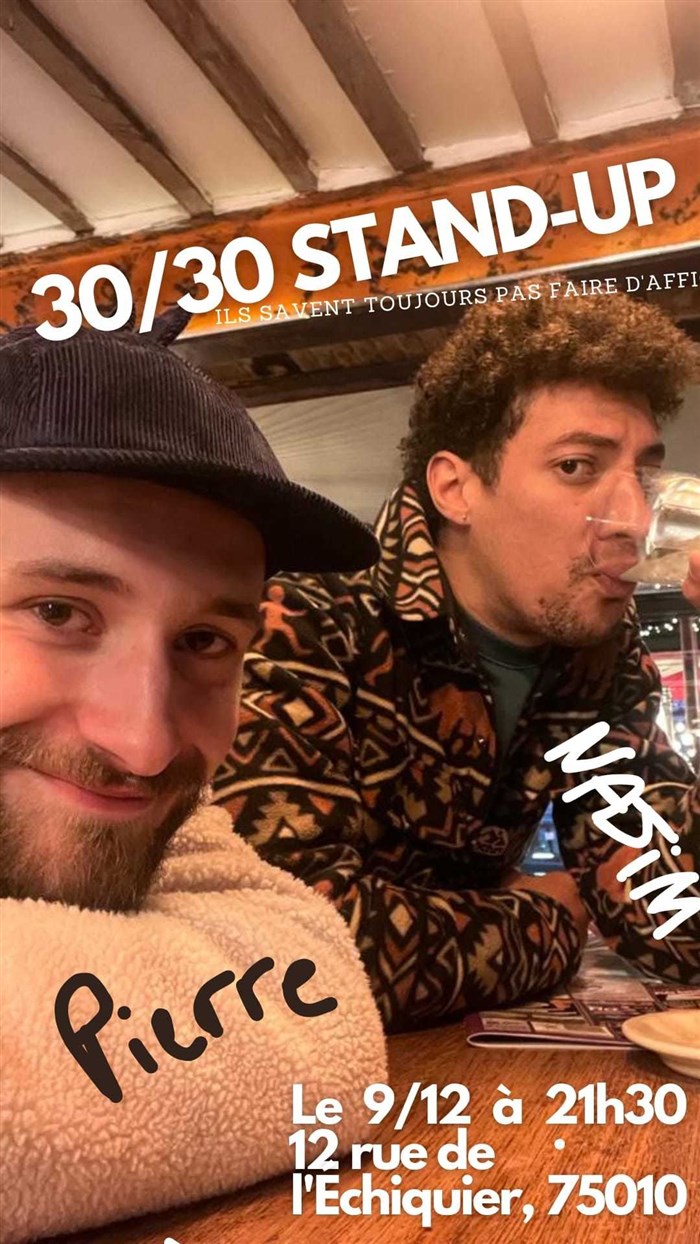 Pierre et Najim reviennent partager l'affiche pour un 30 minutes chacun de Stand Up. Après avoir écumé plusieurs plateaux de stand up à Paris et ailleurs, ils décident de partager la scène du Kibélé pour vous présenter deux univers bien à eux et pour bien commencer l'année !
