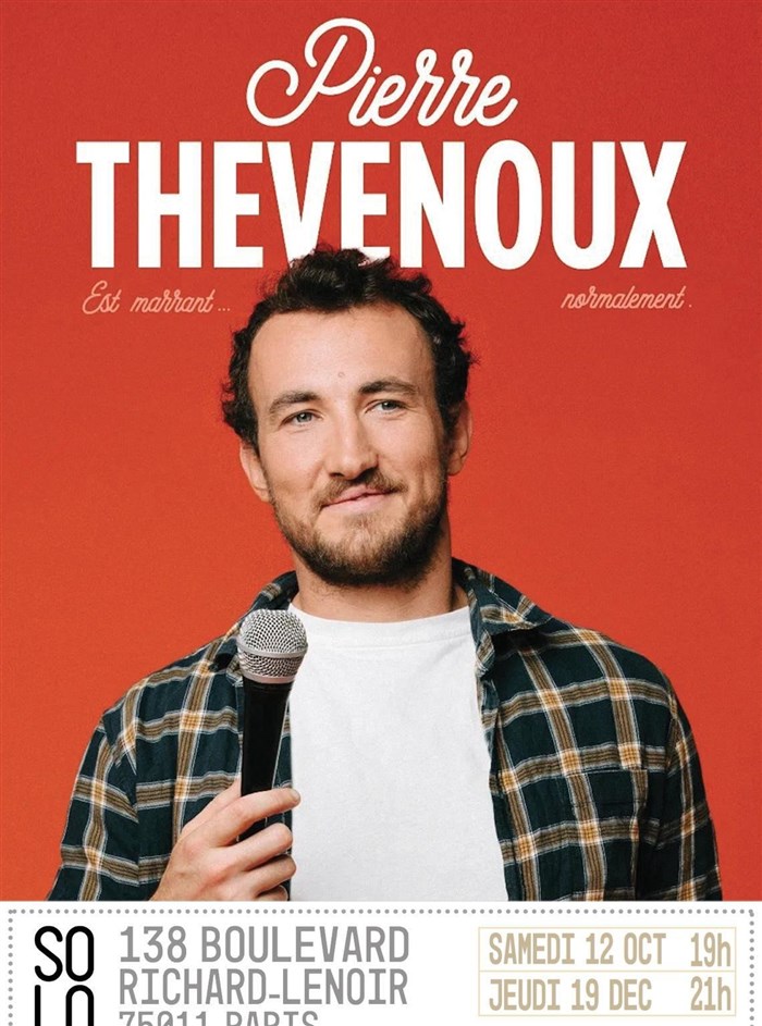 L’événement Pierre Thevenoux est marrant... Normalement de type One man show, organisé ici : Le Solo - Paris, n'est plus disponible à la vente.