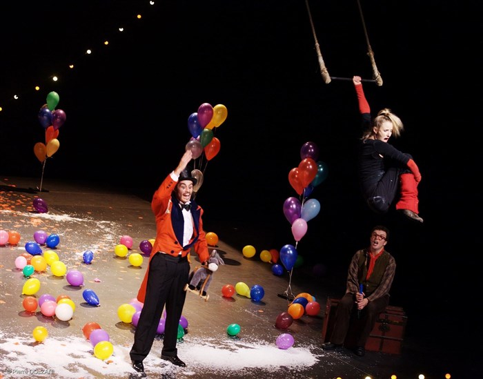 Les aventures du pantin de bois et du vieux Geppetto sont racontées par une danseuse aérienne, un conteur, un homme orchestre, une fée accordéoniste...