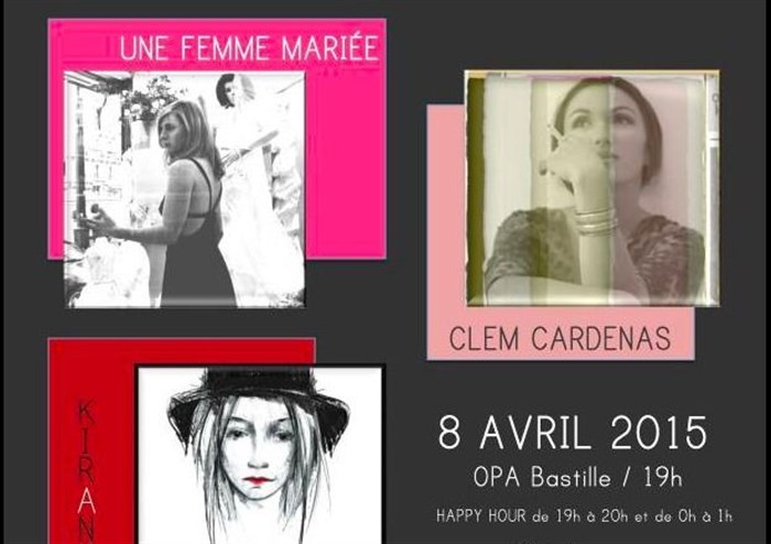 La soirée est un plateau d'artistes de 20H00 à 23H30 avec en première partie une femme mariée,2eme partie Kirane et en troisième partie Clem Cardenas.