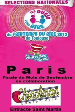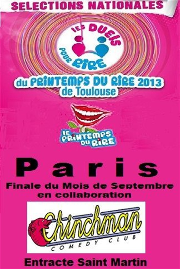 Les Duels pour Rire du Printemps du Rire de Toulouse en partenariat avec le Chinchman Comédy Club présentent chaque lois, le dernier mercredi la finale parisienne des Duels pour Rire 2013/2014