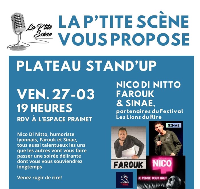 Découvre Plateau Stand Up | Festival Lions du Rire, qui fait partie de notre sélection d’événements de type Plateaux d’humoristes et qui se tient ici : La P'tite scène -
