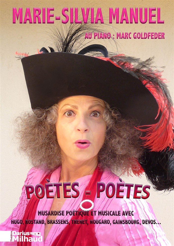 Poètes Poètes : si vous le dites vite, cela donne...He oui ! un " Pouet-pouet " gaillard et truculent. Mais si vous le prononcez normalement, ce " Poètes Poètes " évoque quelque chose de plus profond et de plus délicat. Ce spectacle de Marie-Silvia Manuel jongle entre les deux. 1h20 de textes, de poèmes, de chansons, d'humour, de langue française, bref une musardise poétique et musicale, pour employer le terme d'Edmond Rostand.
