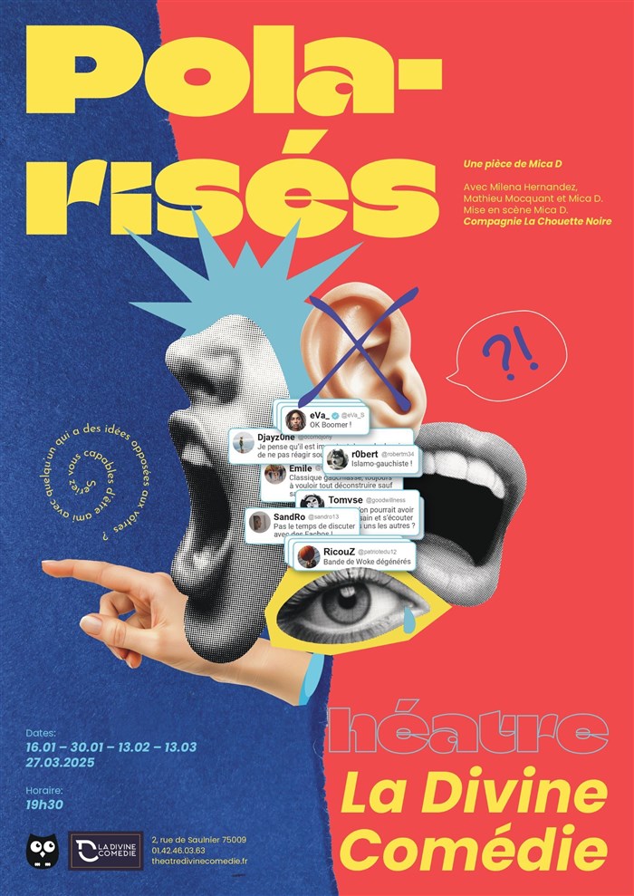 Polarisés est un spectacle tragi-comique qui explore les causes et conséquence de la polarisation de nos sociétés.