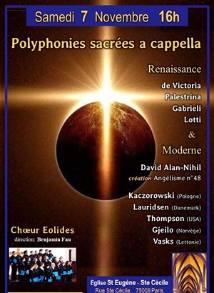 L’événement Polyphonies sacrées a cappella : Renaissance & Moderne de type Musique classique, organisé ici :