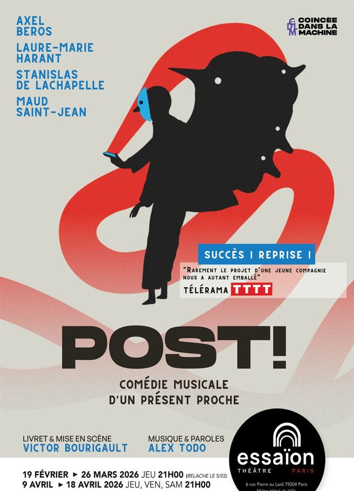 Découvre Post ! Comédie musicale d'un présent proche, qui fait partie de notre sélection d’événements de type Spectacle musical et qui se tient ici : Essaïon-Avignon -