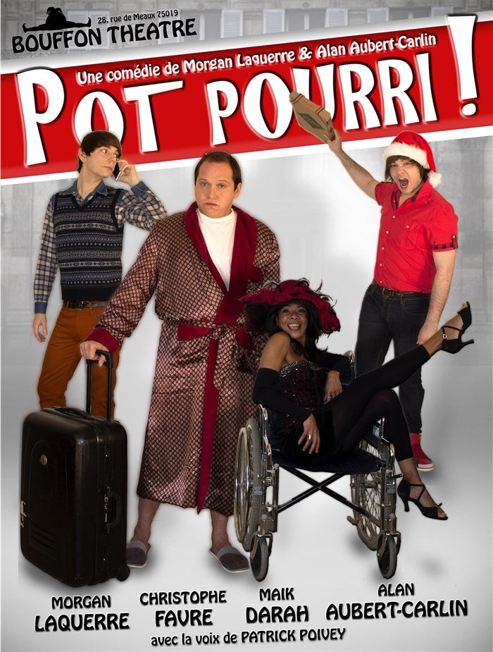 Hier soir nous avons été voir avec des amis Pot Pourri au théâtre Montmartre Galabru ce fut un vrai régal une pièce intelligente et drôle écrite par deux jeunes auteurs Morgan Laguerre et Alan Aubert Carlin en plus de la mise en scène ils excellent tous les deux comme comédiens quel talent !!!!! Quand au couple que forment Lydie Rigaud et Didier Forest ils ne pouvaient être mieux assortis ils sont si drôles dans leur problème de couple et si tendres car Lydie Rigaud qui joue cette femme autoritaire et qui semble si sûre d'elle sait à la fin nous montrer avec émotion sa fragilité, nous étions quatre et unanimement nous avons passé une excellente soirée remplie de rires et d'émotions j'espère que cette pièce se jouera bientôt à Paris avis aux directeurs de théâtre !!!!!