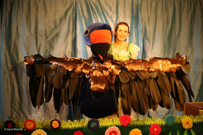Hauts en couleurs, les décors et costumes vont de succéder, se transformer tout en poésie et en ingéniosité pour inciter l'imaginaire du jeune public à transcender l'espace scénique et voyager en même temps que l'héroïne du conte.