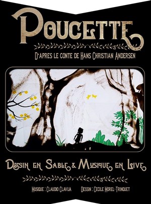Devant les yeux et les oreilles des spectateurs, une histoire se dessine : celle de Poucette, l'enfant immense et minuscule. Projection en direct de dessins dans le sable, sur un air de conte.