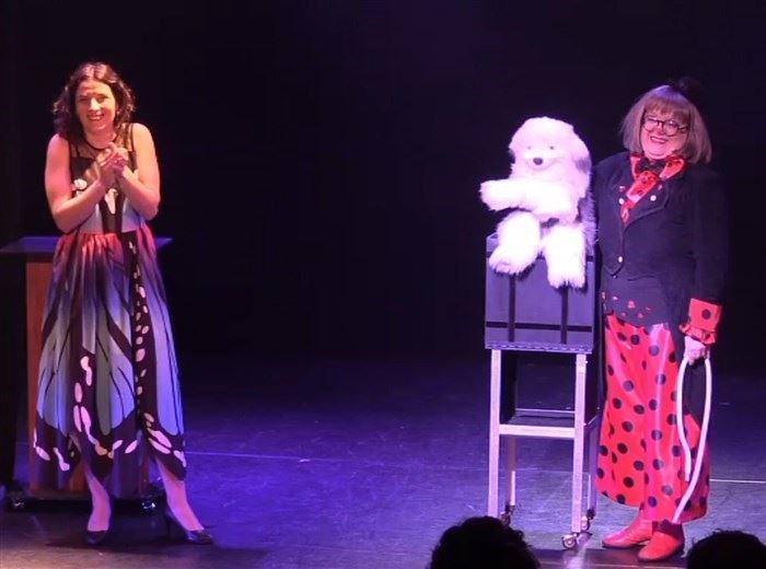 Elle entraîne, pendant tout le spectacle, les enfants de 3 à 10 ans et aussi leurs parents dans ses délires magiques.