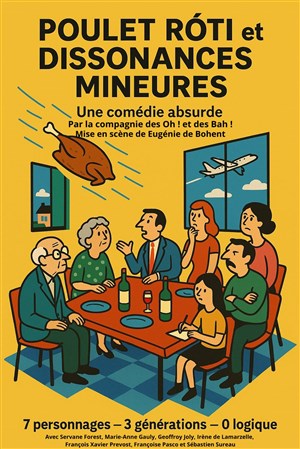 Poulet rôti et dissonances mineures: un repas de famille où le poulet est tiède, les tensions bien cuites, et les conversations partent en vrille. Entre petits fours, grandes maladresses et silences embarassants, chacun brille... par son incapacité à écouter.