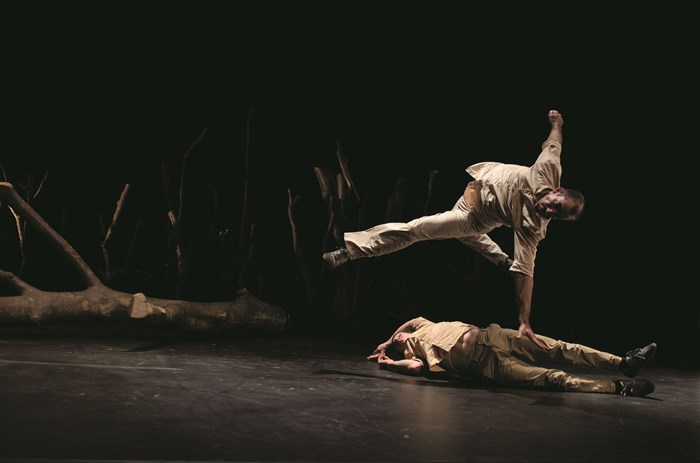 Pour son spectacle, c'est une forêt que ce duo d'acrobates apporte sur scène ! Quoi de mieux qu'un arbre pour illustrer notre rapport à la nature, notre façon de l'exploiter et de la dominer ?