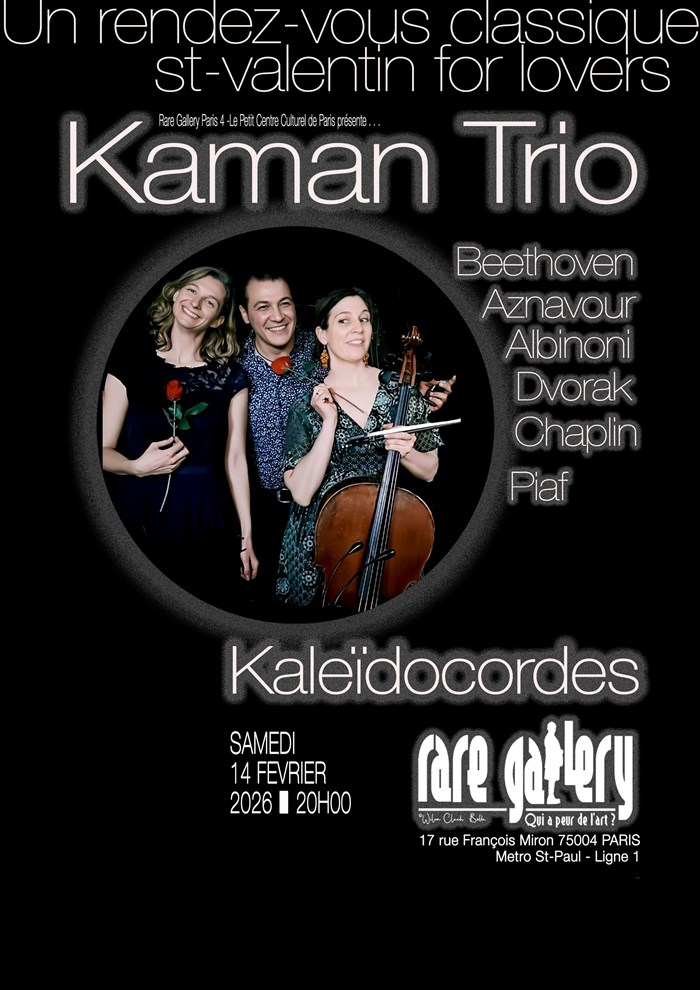 Kaman trio présente Kaleïdocordes : St-Valentin for lovers - Beethoven, Aznavour, Albinoni, Dvorak, Chaplin, Piaf pour vivre les époques et les styles.