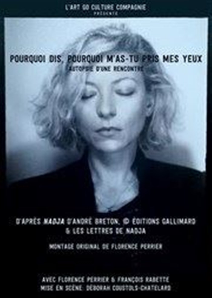 " Pourquoi dis, pourquoi m'as-tu pris mes yeux ", un montage de Florence Perrier d'après l'oeuvre d'André Breton " Nadja " au théâtre La croisée des chemins dans une mise en scène de Déborah Coustols-Chatelard : une rencontre, une belle histoire d'Amour éphémère. " Qui suis-je ? " première réplique, le ton est donné, avec une inflexion de la voix particulière, chaude, nous sommes emportés par la voix solaire de François Rabette, nous sommes hypnotisés par son regard avec cette flamme qui jailli de ses yeux. Une rencontre qui dura quelques jours et qui donna lieu à un coup de foudre, à une intense histoire d'amour d'André Breton où la folie finira par avoir sa place. Un homme errant dans les rues de Paris croise une femme et au premier regard, une admiration surgit, il engage la conversation pour ne plus la quitter, pour ne plus avoir dans son esprit que cette créature de rêve avec ses yeux qui l'on tant troublé. Cette femme de son vrai nom Léona Delcourt c'est Nadja, sous les traits à la douceur slave de Florence Perrier. D'ailleurs, " Nadja " en russe c'est le commencement du mot espérance dit-elle... C'est une boulimique de l'amour à en perdre haleine, à en perdre le souffle. Elle nous conte son histoire comme si c'était sa dernière minute. Il faut absolument qu'il lui écrive un livre. Lui bien que fasciné est beaucoup plus pragmatique. Avec pudeur, il analyse, décortique, décrypte, conte ses anecdotes, ses impressions en quelques mots, rien ne sert de s'étendre. Il est dans le réel : un témoin. Cette histoire d'amour gonfle, gonfle, gonfle comme une immense vague sur laquelle ils vont surfer le temps d'une respiration. Forcément cette vague va venir s'échouer sur le rivage, s'éclater avec perte et fracas, laissant derrière elle deux solitudes, deux esprits en quête d'absolu. Un homme à la recherche du plaisir instantané mais qui se cache derrière sa femme, elle lui sert de rempart, de bouclier. Dans ce montage où les monologues se mélangent avec les dialogues, nous assistons à une belle rencontre, à de beaux échanges, des regards qui se croisent, des mains qui se touchent, des corps qui se rapprochent, où l'amour prend forme. Chacun y apportera sa pierre pour la construction de cette union, union un peu bancale, union qui cherche son équilibre mais qui ne trouvera que la chute : que recherchent-ils dans cette aventure ? Est-il amoureux ? Cet amour est-il réciproque ? La vie n'est pas un conte de fées, et la fée est absente. Mais en fin de compte : Qui est-elle ? Déborah Coustols-Chatelard signe une mise en scène, toute en douceur, sans fard, dans une lumière crue où l'ombre donne toute sa résonance. Florence Perrier et François Rabette échangent avec beaucoup de complicité, donnant vie à ce couple, à ce mythe, entre passion et raison. lebilletdebruno.com