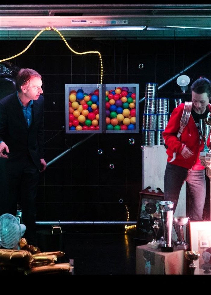 Porté par deux comédiens sur le plateau, ce théâtre documentaire et poétique croise la fantaisie de la fiction avec la réalité du matériau vidéo et sonore. Son humour grinçant et décalé joue avec les échelles et les renversements pour dénoncer, toujours, les inégalités.