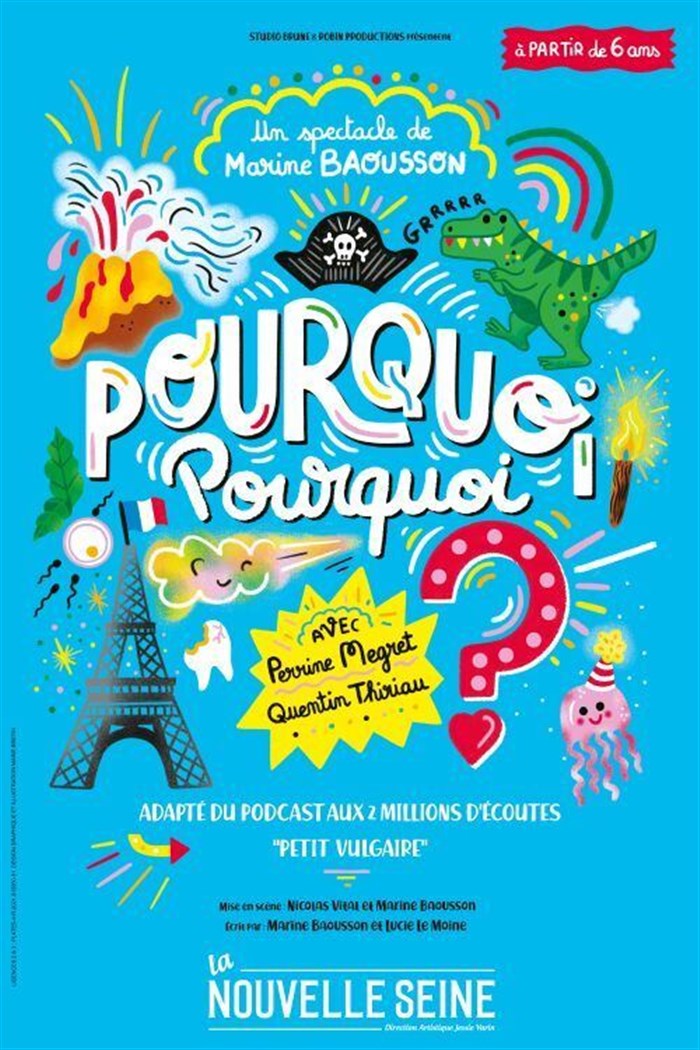 Adapté de Petit Vulgaire, le podcast de vulgarisation aux 2 millions d'écoutes, Pourquoi Pourquoi, c'est LE spectacle qui répond à toutes les questions que vos enfants vous posent, alors qu'évidemment... vous n'avez pas la réponse.