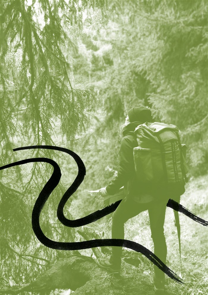 Une jeune femme est là. Elle annonce son départ, son besoin de partir seule. Equipée d'un sac à dos, d'une tente, d'une carte d'orientation et tout le matériel nécessaire pour être autonome, elle part marcher, cheminer. A-t-elle peur ? Tant pis. Ou tant mieux.