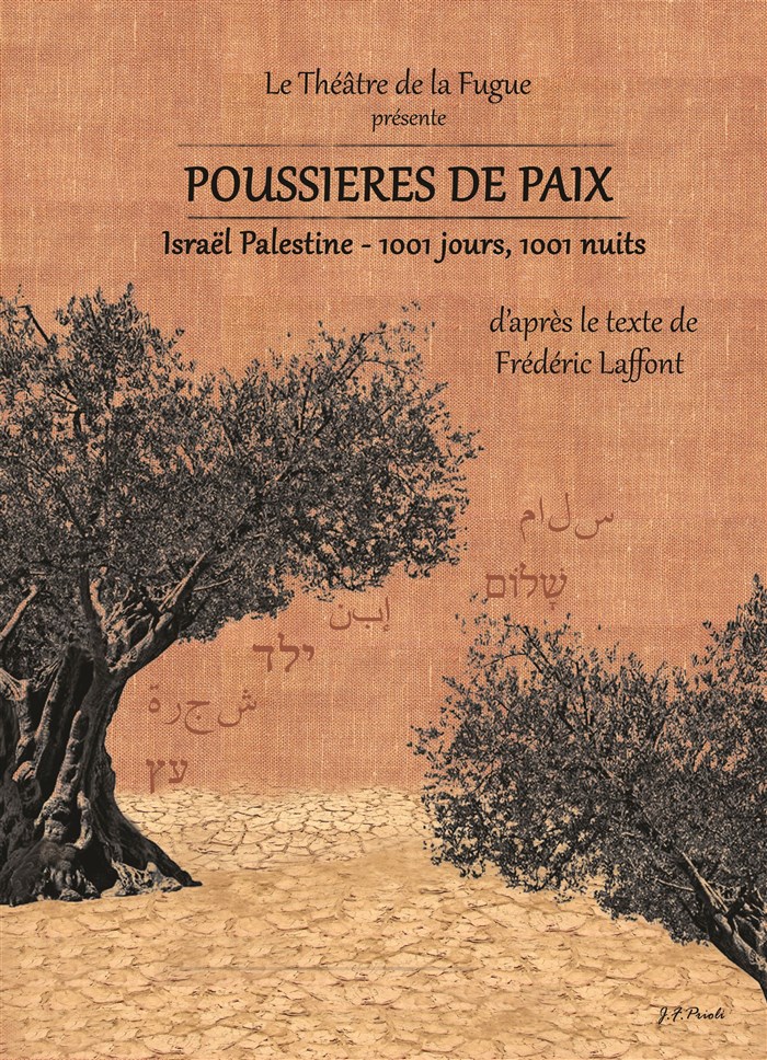 "Poussières de paix prend sa source dans le livre Israël-Palestine, 1001 jours, 1001 nuits du Grand reporter et cinéaste Frédéric Laffont. Ces textes se fondent sur ce que le reporter a vu, perçu, entendu et qu'il nous donne à saisir dans un esprit d'empathie et de dialogue avec ces deux peuples qui résistent tant à se rencontrer.
