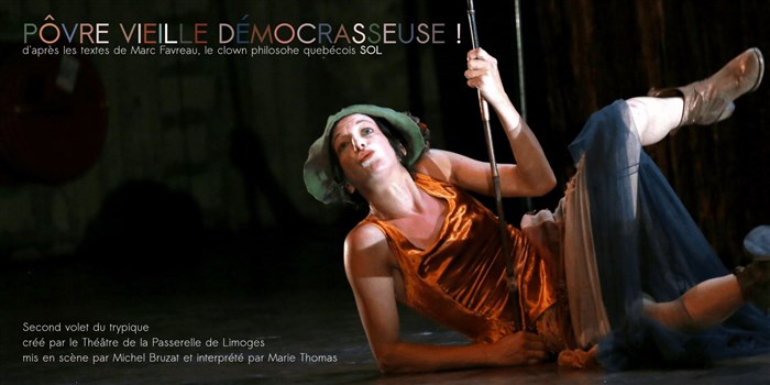 Exaltation poético-politique autour des textes de Marc Favreau (SOL), auteur québécois, interprété par une superbe clown de théâtre, Marie Thomas.