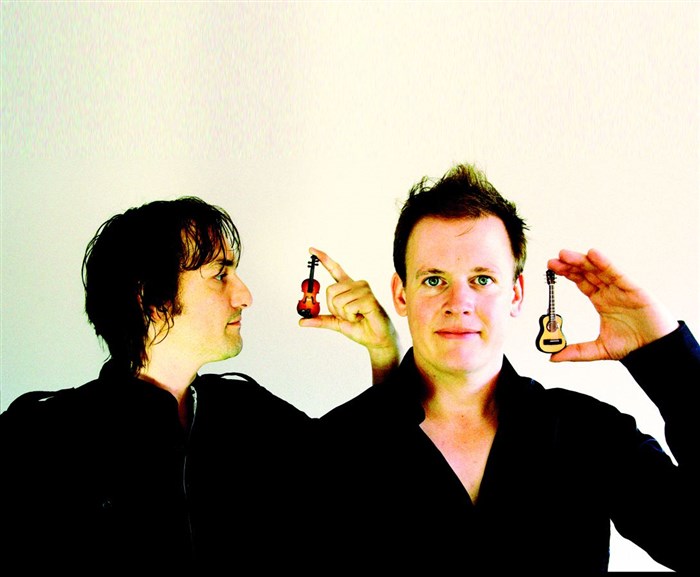Derrière Presque Oui, il y a Thibaud Defever, guitare et voix, aujourd'hui accompagné par Sylvain Berthe, violoncelle, flûtes à bec et mandoline.