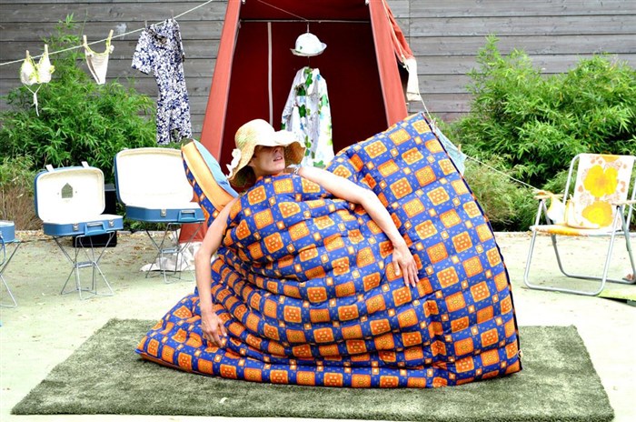 Au milieu de toiles de tente, lits de camp, transats, et autres accessoires de camping, chaque danseuse nous invite à partager son univers intime, coloré et fleuri. La danse est faite d'une succession d'états liés à la manipulation de ces objets, créant une forme de danse expressive, poétique et ludique.