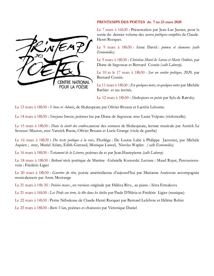 L’événement Printemps des Poètes : Sinziana Ionesco | par Diane de Segonzac accompagnée au violoncelle par Laure Volpato de type Lecture, organisé ici :