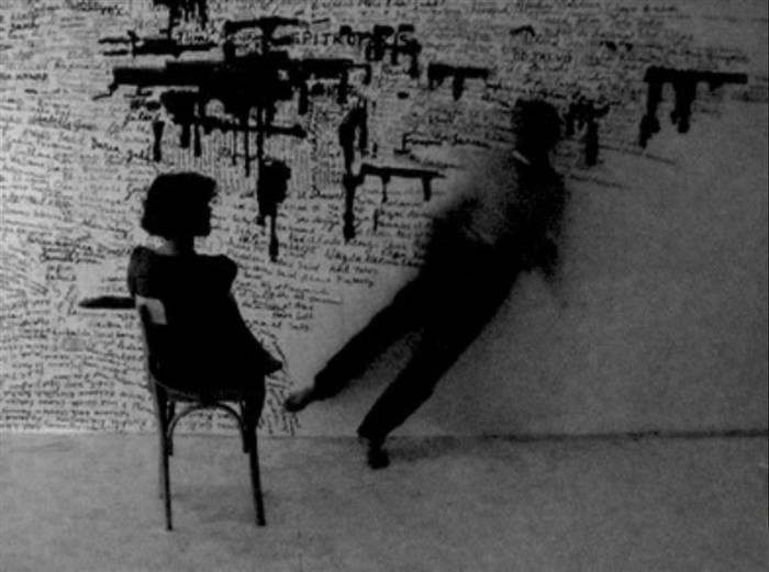 Trois instrumentistes. Un polygraphe. Un écran de projection. Quelques bandes magnétiques imprimées de son. Des dessins accrochés au mur. De petits pas. Un grand sursaut.