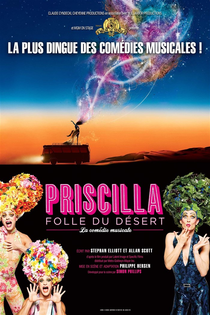 C'est l'histoire tout aussi fantasque que le film, haute en couleurs, généreuse et drôle, de 3 amis qui s'apprêtent à traverser le désert Australien, de Sydney à Alice Springs, pour y présenter leur spectacle de Drag queen. Ils optent pour un bus qu'ils baptisent Priscilla pour le voyage de leur vie. Sur la route, ils ne trouvent pas que l'amour et l'amitié, mais bien plus que ce qu'ils n'auraient osé imaginer.