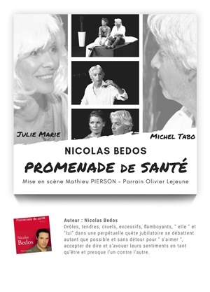 Dernière pièce en date de Nicolas Bedos, et sans doute la meilleure à ce jour, "Promenade de santé" est remarquable. D'une simplicité apparente, Bedos va tirer une tragédie qui ne dit pas son nom, une histoire d'amour vouée à l'échec dans retournement de situation assez innatendu. c'est fin, c'est doux-amer, on rit la gorge nouée, d'un rire gêné...