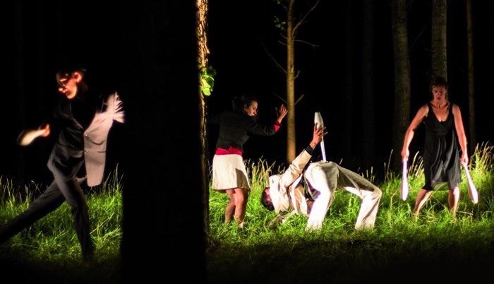[Protocole] découle de la rencontre de six jongleurs qui ont en commun la massue et le corps.