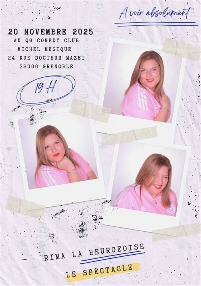 Découvre QG Comedy Club : Rima La Beurgeoise, qui fait partie de notre sélection d’événements de type One Woman Show et qui se tient ici : QG Comedy Club-Chez Michel Musique Live -