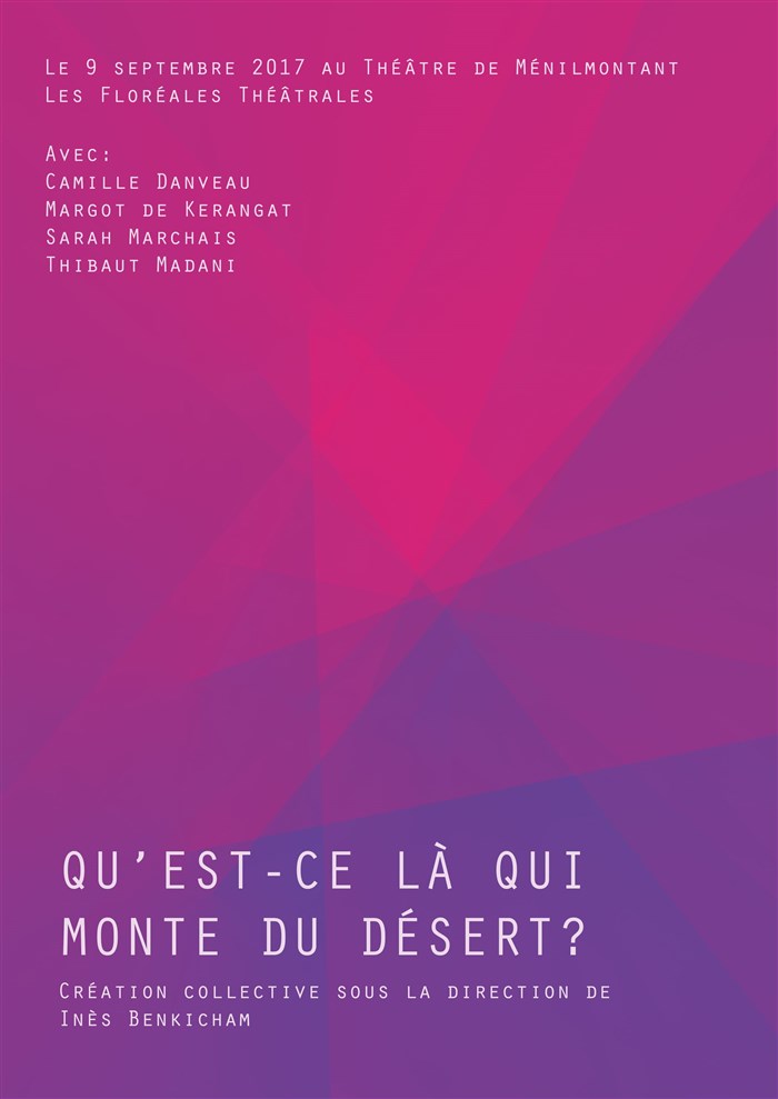 L’événement Qu'est-ce là qui monte du désert ? de type Théâtre contemporain, organisé ici :