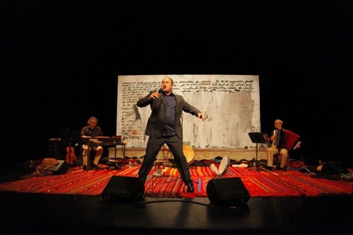 Quand m'embrasseras-tu ? s'inspire des poèmes du Palestinien Mahmoud Darwich. Sur scène, deux musiciens, un peintre et la voix puissante d'Abdelwaheb Sefsaf.