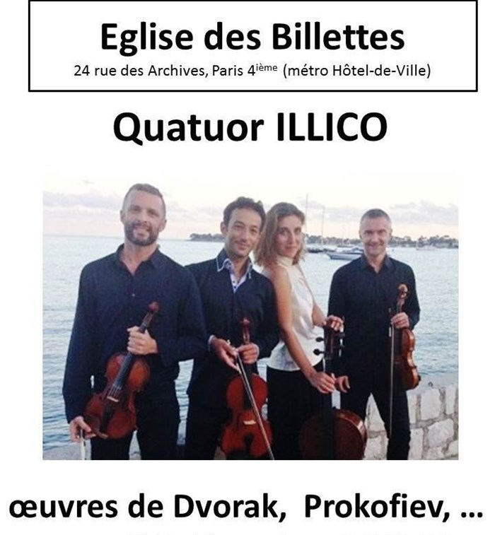Concert du quatuor à cordes Illico qui interprètera notamment des oeuvres de Dvorak et Prokofiev