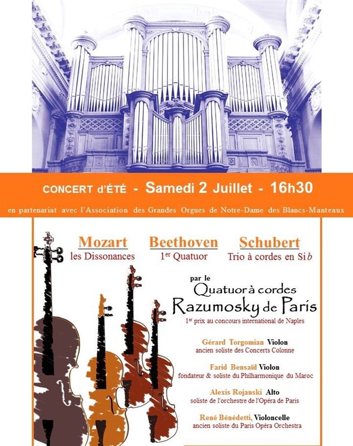 par les Exceptionnels Solistes du Quatuor Razumosky de Paris (1er prix au concours international de Naples)