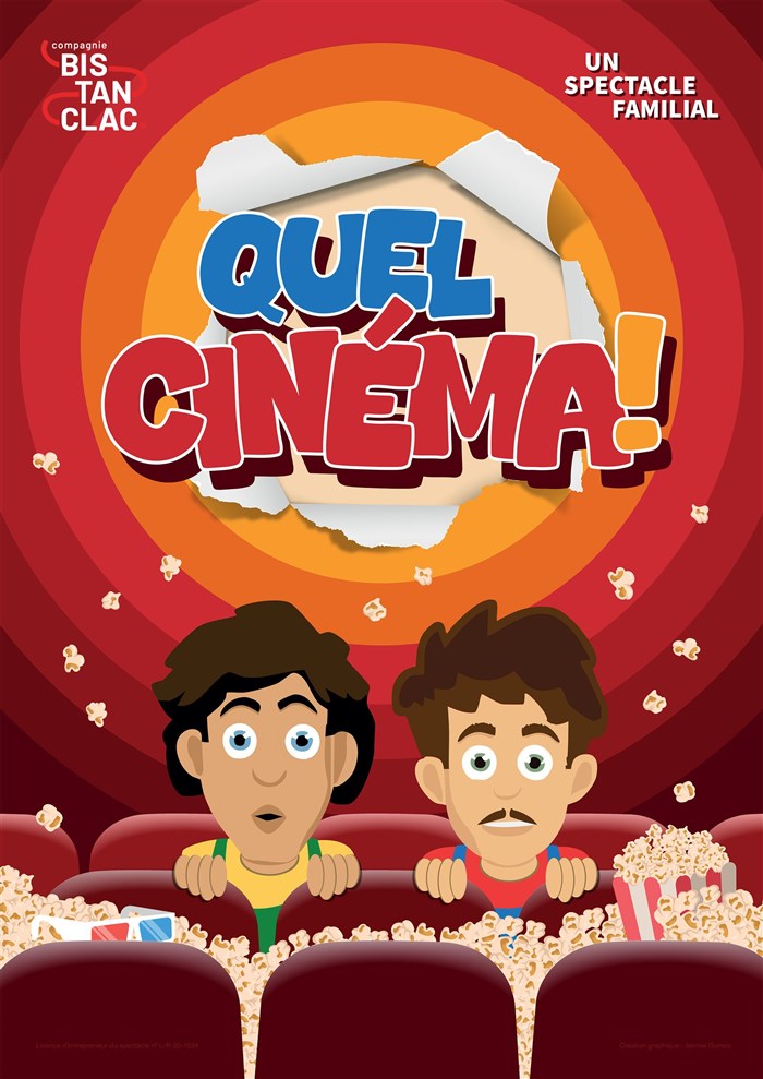 Après Quel cirque ! et Quel Noël à l'école des lutins, la toute nouvelle création familiale de la Compagnie du Bistanclac, Quel cinéma ! est un hommage burlesque et poétique aux films qui ont bercé notre enfance, que l'on soit né au XXème ou au XXIème siècle ! Le temps d'une heure, Michel et Michel vous proposent un joyeux bazar mêlant souvenirs heureux et gags visuels. Plus qu'un spectacle, venez vivre un vrai moment de partage en famille !