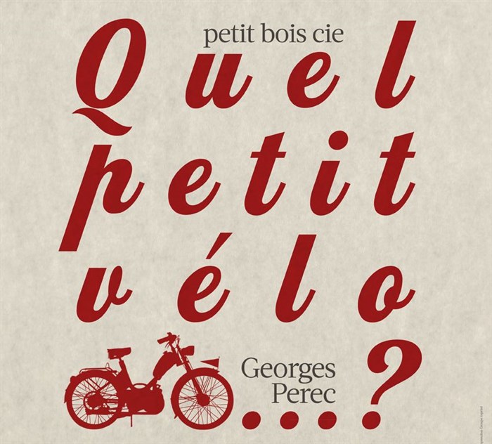 Adaptation pour la scène de Quel petit vélo à guidon chromé au fond de la cour du texte culte d'un Perec "oulipien" qui accumule figures de style, rimes et références littéraires à savourer.