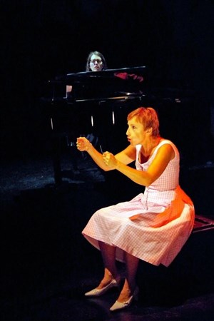 C'est ce qu'elle va nous raconter pendant 45 minutes de discussion en paroles et musique avec une pianiste tout d'abord courroucée de l'intrusion au milieu de son concert, puis sincèrement touchée par la quête désespérée de cette femme semblant sortie d'un conte enfantin mais qui sait si bien nous parler de nous...