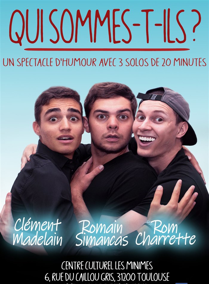 Romain Simancas, habitué du théâtre, Clément Madelain, stand-upper toulousain et Rom Charrette, connu pour ses vidéos sur internet, vous proposent leur spectacle d'une heure avec trois solos de vingt minutes.