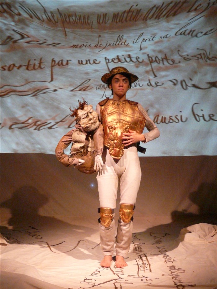 Le seul en scène d'Eva Castro est une performance. Pour raconter ces merveilleuses aventures, elle est le chevalier errant ou son fidèle Sancho Pança et tous les autres rôles, alternant le jeu et la manipulation des marionnettes.