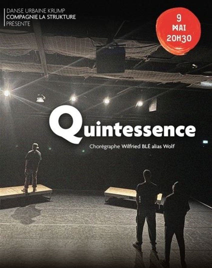 Quintessence est un spectacle de danse captivant, mis en scène par le chorégraphe Wilfried Blé alias Wolf, qui rassemble cinq interprètes pour explorer l'univers du Krump. Ce spectacle plonge profondément dans l'authenticité des émotions, révélant la puissance et la vulnérabilité présentes dans chacun de nous.