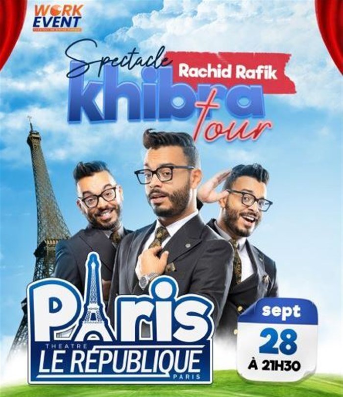Après son sold out à l'Apollo Théâtre à Paris, Rachid Rafik est heureux de poser ses valises encore une fois à Paris pour une date exceptionnelle de son dernier show "Khibra Tour".