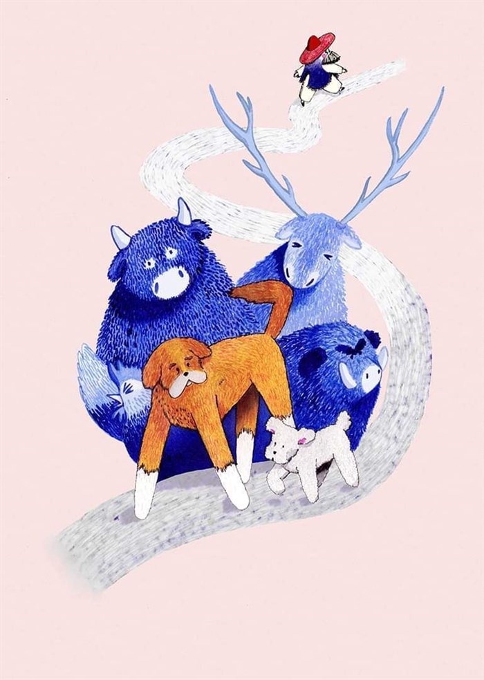 son chemin (vaches, volatiles, cerf...). Le chien fidèle et un peu naïf est