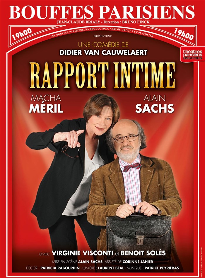 Poursuivre l'oeuvre de Jean-Claude Brialy est toujours un défit.Didier Van Cauwelaert s'est lancé dans l'aventure avec la création d'une comédie "Rapport Intime".Une parodie d'émission de TV avec tentative de réconciliation entre un prof de grec et sa femme qui va tourner au vinaigre.Nous avons Alain Sachs dans le rôle du prof et Macha Méril dans celui de la présentatrice de TV.Deux personnages qui vont s'affronter et nous révéler petit à petit leur vrai visage durant une heure trente .Du rire, de la réflexion et même un peu de mélancolie.En somme une bonne pièce avec un auteur reconnu,deux grands artistes entourés de Virginie Visconti et Benoît Solés très à l'aise aussi dans leur rôle. D'où une bonne soirée récréative.